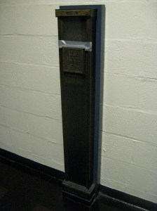 It’s a mail chute! At some point, you would just stick your letter in that slot, it would fall down and be collected at the bottom.  I don’t know if it is still used but I thought it was awesome.  Considering it’s old and dirty, it is rather pretty and very useful if you still use snail mail. I like the minimal decoration.  Today we’d just amke it plain stainless steel or something, but they added some simple decoration which is something lost today.  Ornamentation seems to be either baroque ornate or completely minimal these days.