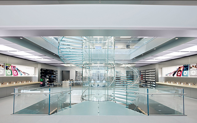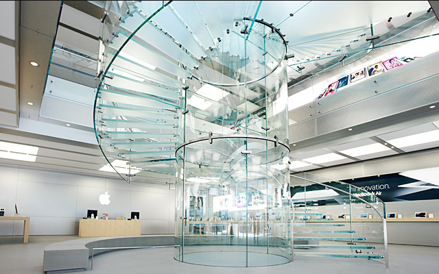 Or that they don’t sell elevators, therefore deserve no place on their show floor – whereas those terrifying glass stairs are very much part of the ‘brand’ Apple is selling consumers. We have to wait until Apple develops its own method of transportation, the iTeleport.