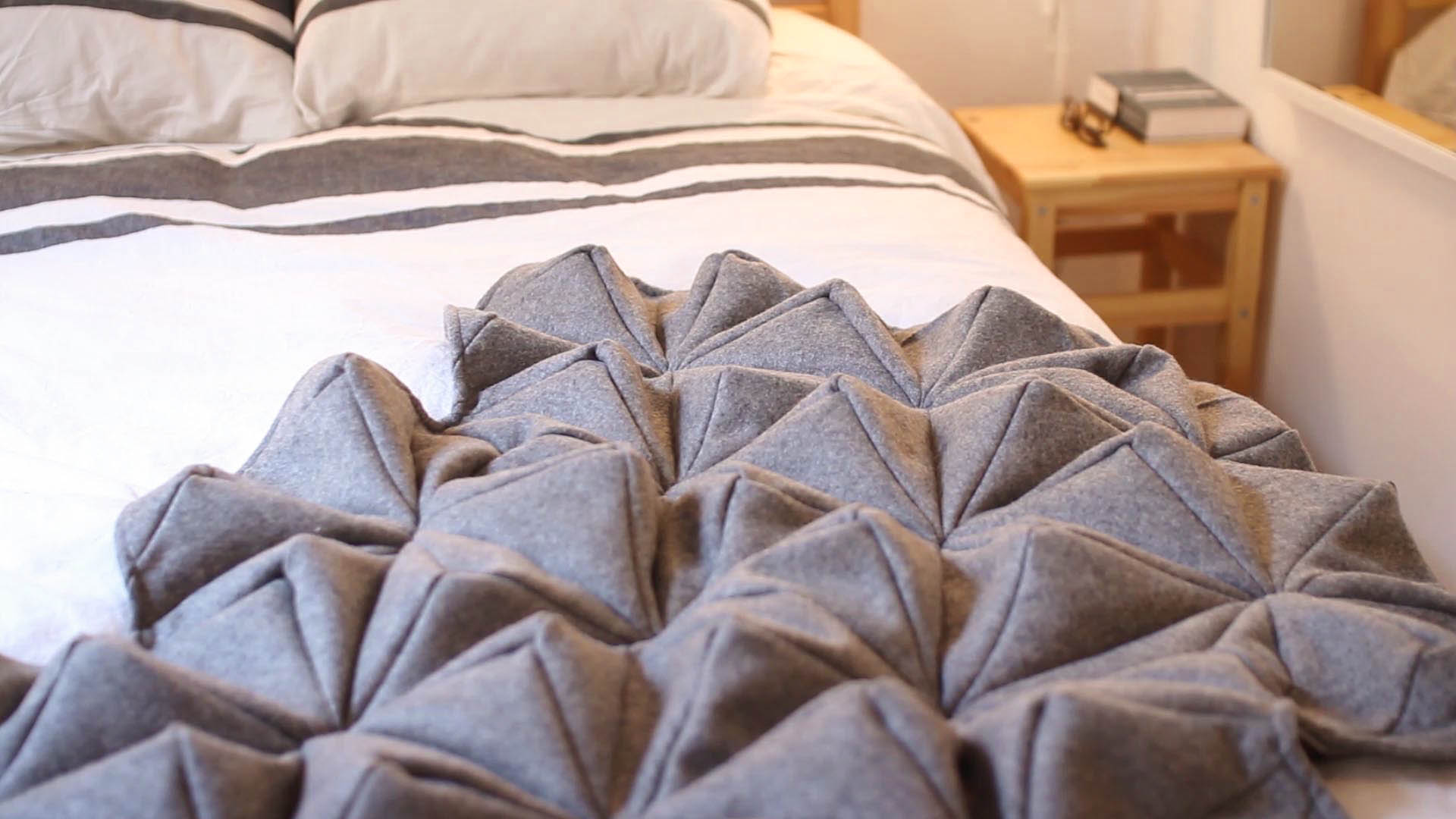 But this blanket deserves a press release, because it’s making me happy on so many levels. It’s snuggly, it’s soft, and it’s a tetrahedral model. It’s Italian Cashmere Wool. The captured air creates extra insulation. It’s stunningly beautiful.